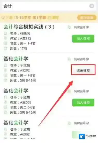 7、这样我们蹭课的课程就导入我们的课程表了,我们可以看到上课时间和老师。如果不想蹭课了,就点击推出课程就可以了。