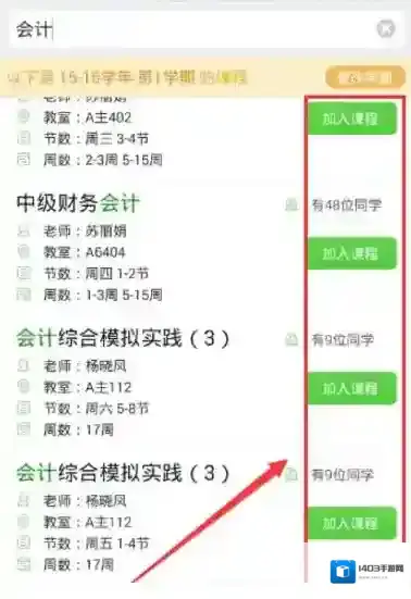 5、这样我们就会搜索到我们学校很多的课程,然后我们找一门自己想要蹭课的课程,然后点击加入课程。