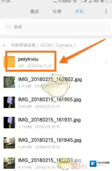 7.在”Camera”的文件夹里找到名为“peiyinxiu”的文件夹,刚才录制的作品就在该文件夹里,按照时间提示很快就能找到了。