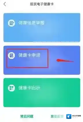 5、进入居民电子健康卡申领页面,点击”健康卡申领“。