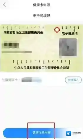 6、在健康卡申领页面可以直接申请到自己的电子健康码,当需要申报健康信息时,点击健康信息申报即可。