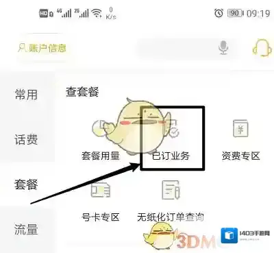 4、在套餐内,可看到查套餐,点击“已订业务”。