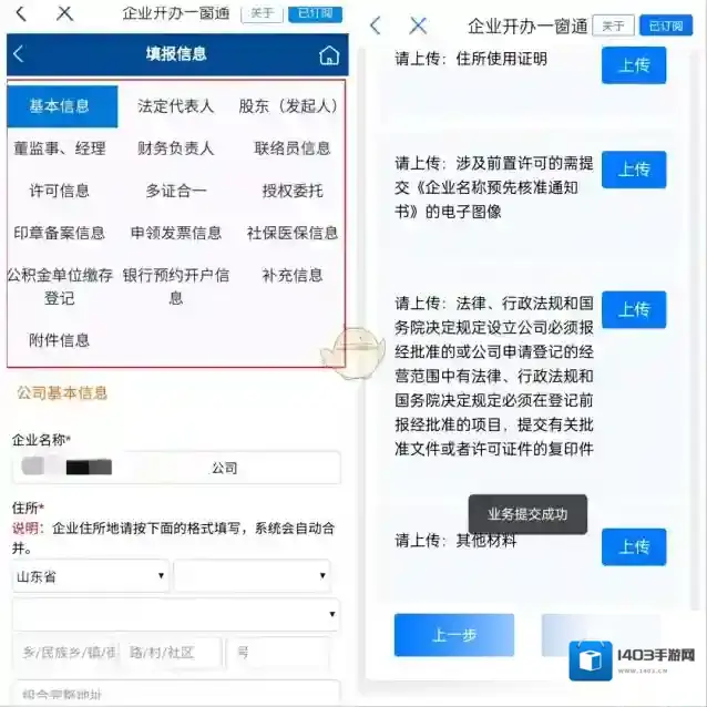 3、进行“企业登记”填报。选择“设立登记”-“发起设立”,逐页填写企业基本信息、法定代表人、股东等16项信息(第16项中,需上传的图片附件,要先裁剪再上传),确保填全、无误后,点击“提交”。