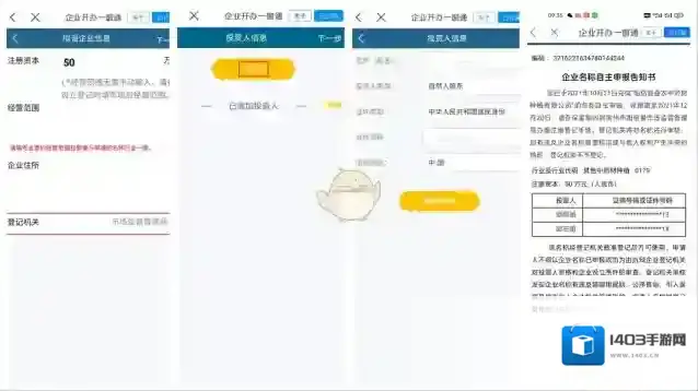 3、进行“企业自主申报”。点击“开办企业”,再点击“企业名称申报”,填写具体的企业名称信息及公司类型,点击“提交”。登记机关选择“滨州市市场监督管理局”,添加投资人信息,名称自主申报完成。