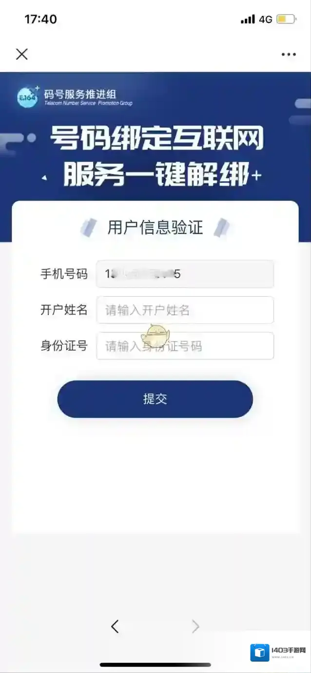 4、最后输入姓名及身份证号,点击“提交”,即可解绑相关应用服务。