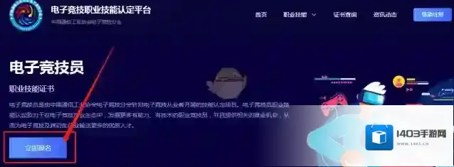 2、进入电子竞技员报名页面后,点击页面上方的“立即报名”