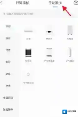 4、进入添加设备,点击手动添加,选择相关的海尔设备,输入设备上的设备码进行添加即可。