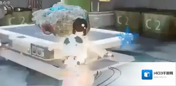3、之后走到石架的边缘,对着方舟研究院里面的通道使用黑狮包。
