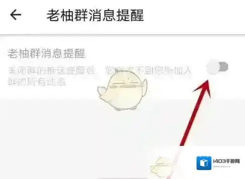 4、进入到老柚群消息提醒界面后,我们再滑动老柚群消息提醒后面的滑块至灰色。