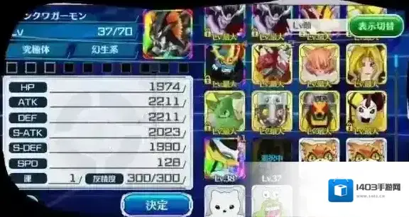 同一种属性的芯片一只dm只能放一块,如图,放了g级攻击的小丑不能再放f级攻击,放了g级魔攻的沙古牙(这里漏了一张截图)也不能放g级魔攻