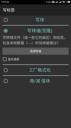 3、选择新建的密钥文件对卡进行读写,读取出卡的数据可以保存到手机中;