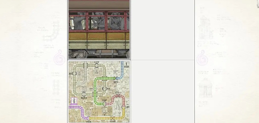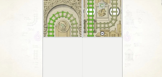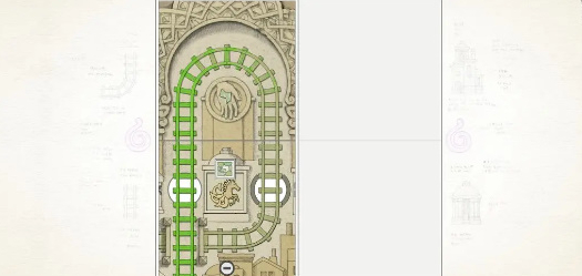 3.放大图2地图,图1向←两次,放大柱子地图。图2放大绿色轨道,图2移至图3,火车行驶到紫色轨道;