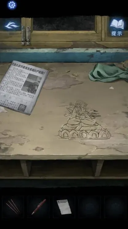 7、开门后在办公桌上右侧有一个报纸,点开后获得锦旗的摆放方式,根据提示摆放锦旗后。右面的柜子打开获得三根香。
