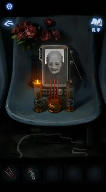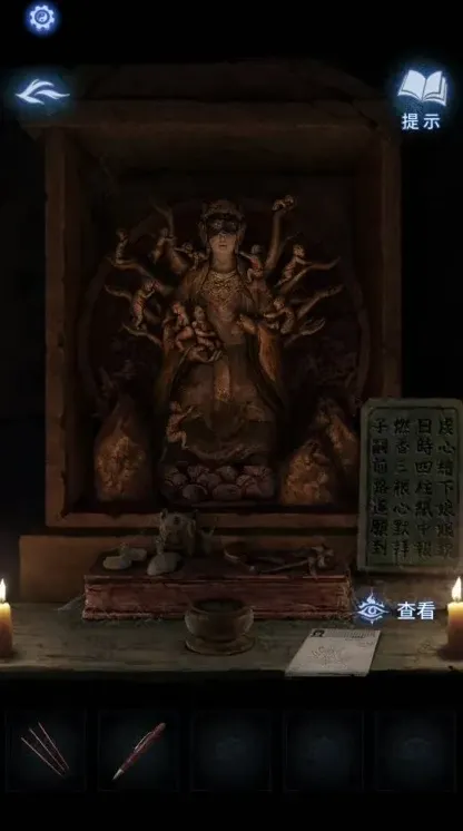 16、将纸放在供桌上,插上香,点击神像,经过一段动画后,触发剧情,剧情结束。
