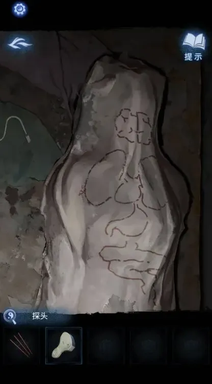 10、回到检查室将小木人放在刚才打开的木柜子的上方的空缺。获得探头。