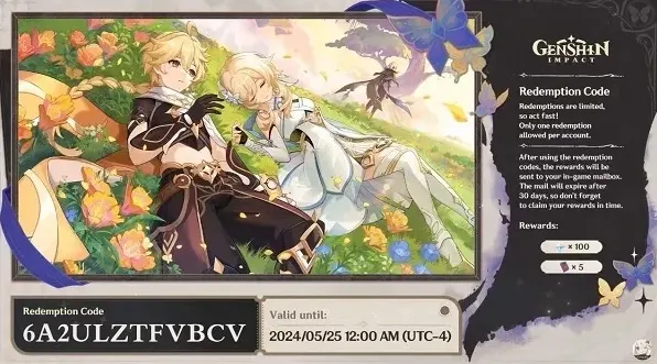 原神4.7版本的前瞻直播全部兑换码啦,大家快去游戏中兑换吧,以防失效!