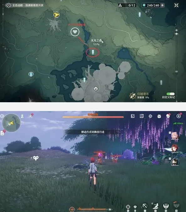 点位:无光之森,爬坡后就可以看到。