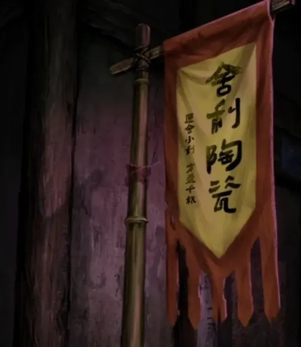 调整完毕后轿子帘子打开然后走掉了,露出后面的白衣人,查看中间的白衣人拿到女友照片,“你为什么会有我女朋友的照片?”不对跑题了,后退来到一家人没有人场景,查看最右边奇奇怪怪的人,他后面的旗子上写着亡者之画换扇子,那不就是用遗像换吗,所以遗像给他拿到电风扇,也没错吧也是扇子。