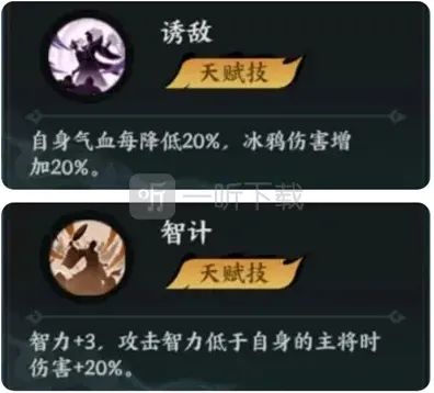 被动可以给冰鸦增加索敌效果,在场期间主动攻击获得寒冰效果的武将。也正因此,贾诩需要固定搭配许褚,利用他来对敌人施加寒冰效果,从而增加自身的输出上限。另外还可以搭配郭嘉,补充团队伤害的同时以冰冻效果造成控制,让敌人无法行动。