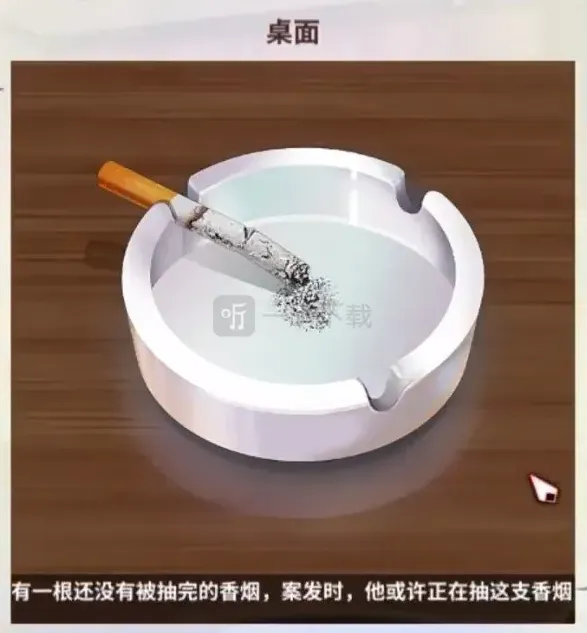 有一个半截香烟,没有抽完,发生这个案件的时候可能死者正在抽香烟。