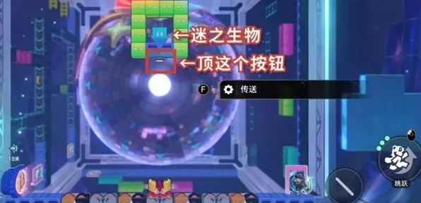 2、弹完后进到隐藏空间,跳过去顶这个按钮就能达成乐园变奏:刺猬汉斯成就