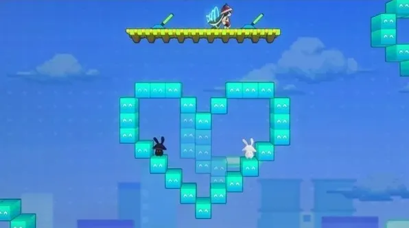2、弹完后进到隐藏空间,跳到右边这个操作台操作2个遥杆,让2边合成一整个完整爱心就能达成乐园变奏:兔子坡成就