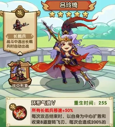 1、吕玲绮,吕玲绮的技能与长戟兵的输出模式高度契合,长戟兵完成一轮攻击后,会进入短暂的发呆状态,此时的长戟兵不仅没有输出,还很容易被击败。而吕玲绮在攻击结束后,飞刃仍会持续输出,并附带秒杀效果,清理群怪效率极高。达到三星以后,吕玲绮还会获得易伤效果。易伤属于高贵的独立乘区,和卡牌宝石等伤害增加互相独立,不会被稀释。
