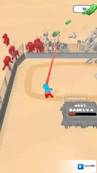 2、蓝色小人遇红色敌人,通过点击、滑动等操作,与敌人战斗对决。
