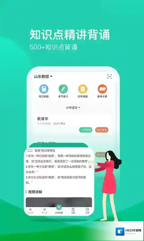 拥有行业最大的教师招聘题库之一,大数据出题,解析精确,创新知识点背诵功能,涵盖教师招聘考试全部考点,让你扔掉图书,走到哪背到哪,用了再也回不去。