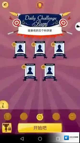 3、在每日挑战榜界面,点击开始吧按钮,参与最著名的五位科学家相关挑战。