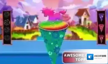 2、梦幻视觉呈现:采用水彩风格画面,冰淇淋淋面时呈现流体渐变效果,撒上“水晶糖霜”会触发粒子闪烁特效,不同颜色叠加可产生“色彩混合”化学反应,如红蓝交融生成梦幻紫色。