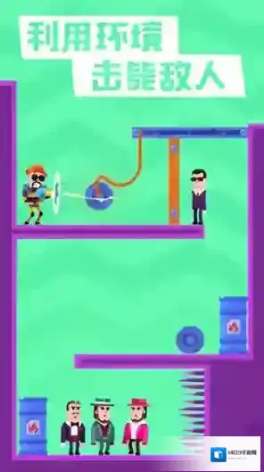1、核心射击机制,玩家需观察敌人分布,计算最佳射击角度,利用穿透或反弹实现一弹多杀。
