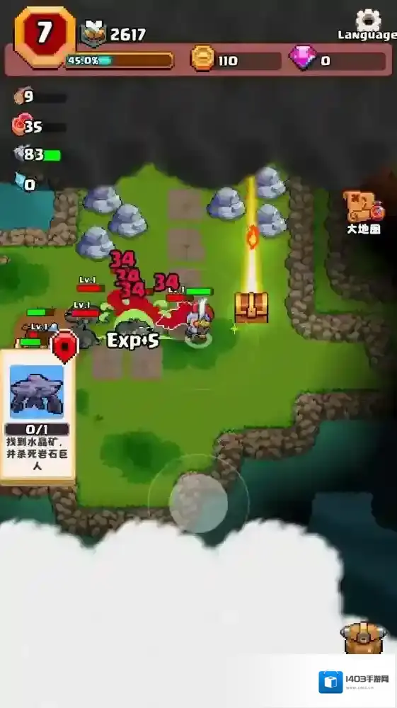 3、当收集足够的材料后就可以解锁新的地区,击败怪物也可以获得经验来提升等级。