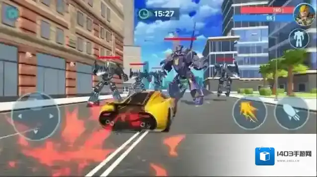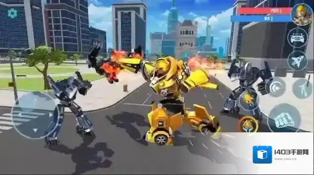 1、启动游戏后化身全能战斗机器人,可在汽车、战机、机甲等形态间自由切换,肩负保卫都市的重任。