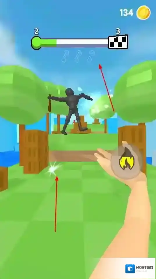 1、玩家通过拖动屏幕来操控手的动作,击打场景中的敌人。