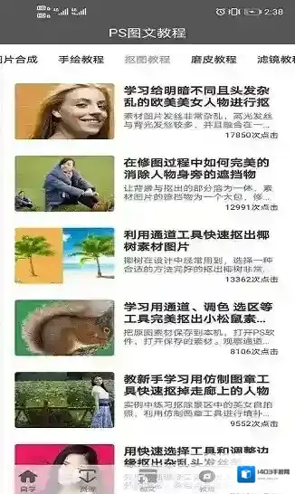 自学教程 – 精选了零基础到精通PS的所有课程, 可以支持在线视频教学、素材免费下载、美图、修图、图文设计教学、图文并茂学习等功能,易学易懂。ps教程内容从基础入门到高级阶段,系统又全面,适合所有photoshop设计爱好者,调色教程、文字特效、图片合成、手绘教程、磨皮教程、滤镜教程、签名设计、抠图、P图、修图、美图,平面设计等一系列PS教程。