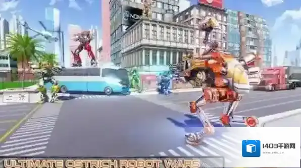 3、关卡选择页,点击1号关卡(唯一解锁),操控机甲/汽车,在城市环境中,完成战斗挑战,推进游戏。