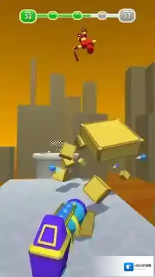 1、点击屏幕发射炮弹,击倒箱子。